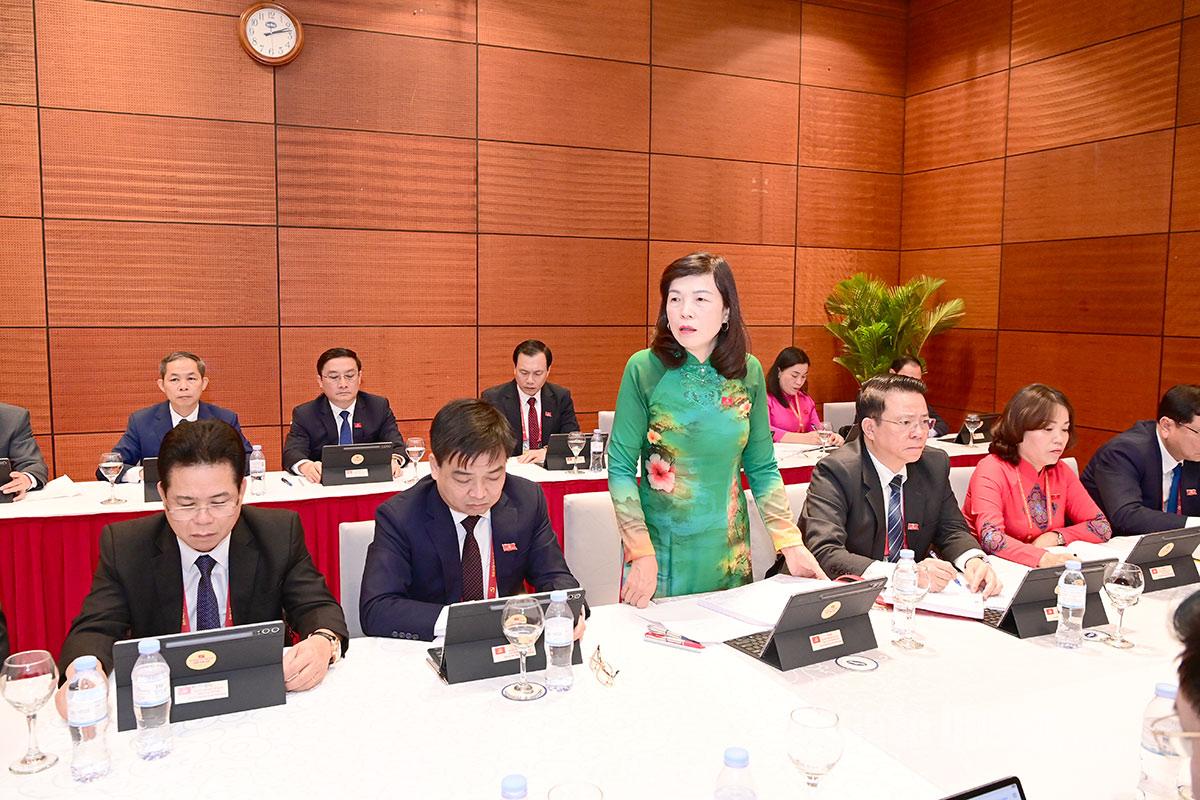 Đồng chí Phạm Thị Minh Xuân, Ủy viên Ban Thường vụ Tỉnh ủy, Phó Chủ tịch HĐND tỉnh phát biểu thảo luận. Ảnh: Việt Hòa