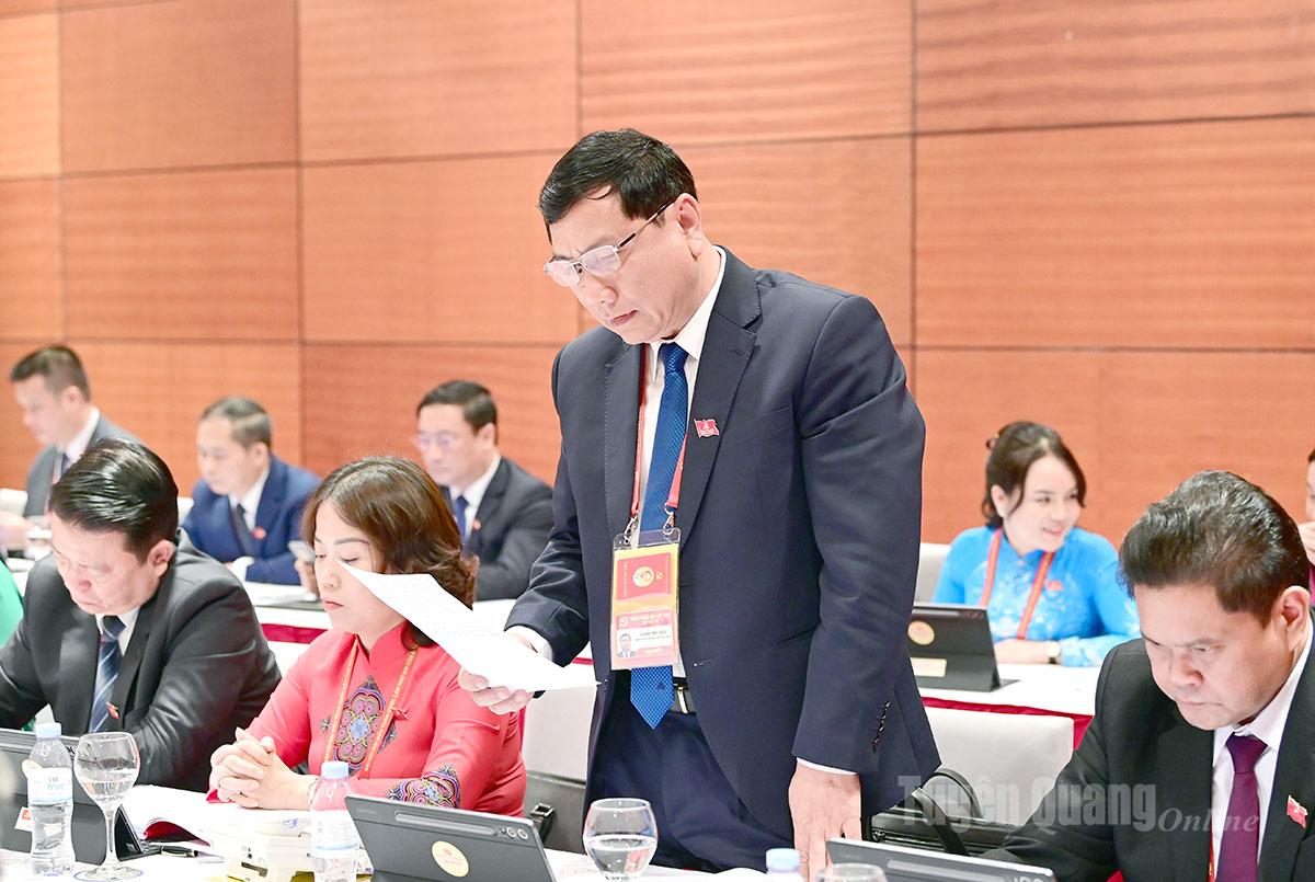 Chiều nay 20-1, Đại hội đại biểu toàn quốc lần thứ XIV của Đảng tiếp tục làm việc. Đoàn đại biểu tỉnh Tuyên Quang thảo luận tại đoàn. Đồng chí Hầu A Lềnh, Ủy viên BCH Trung ương Đảng, Bí thư Tỉnh ủy, chủ trì thảo luận.