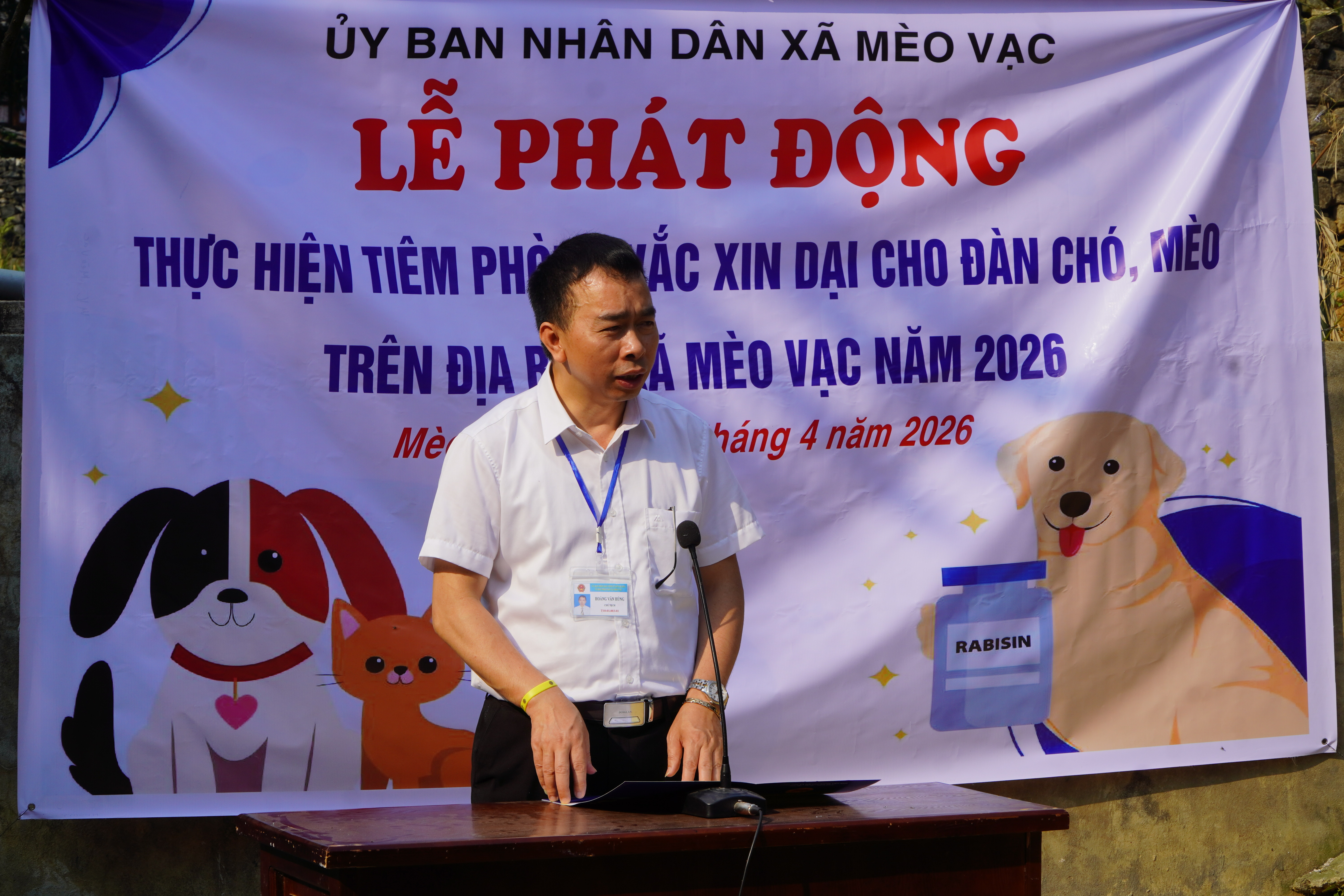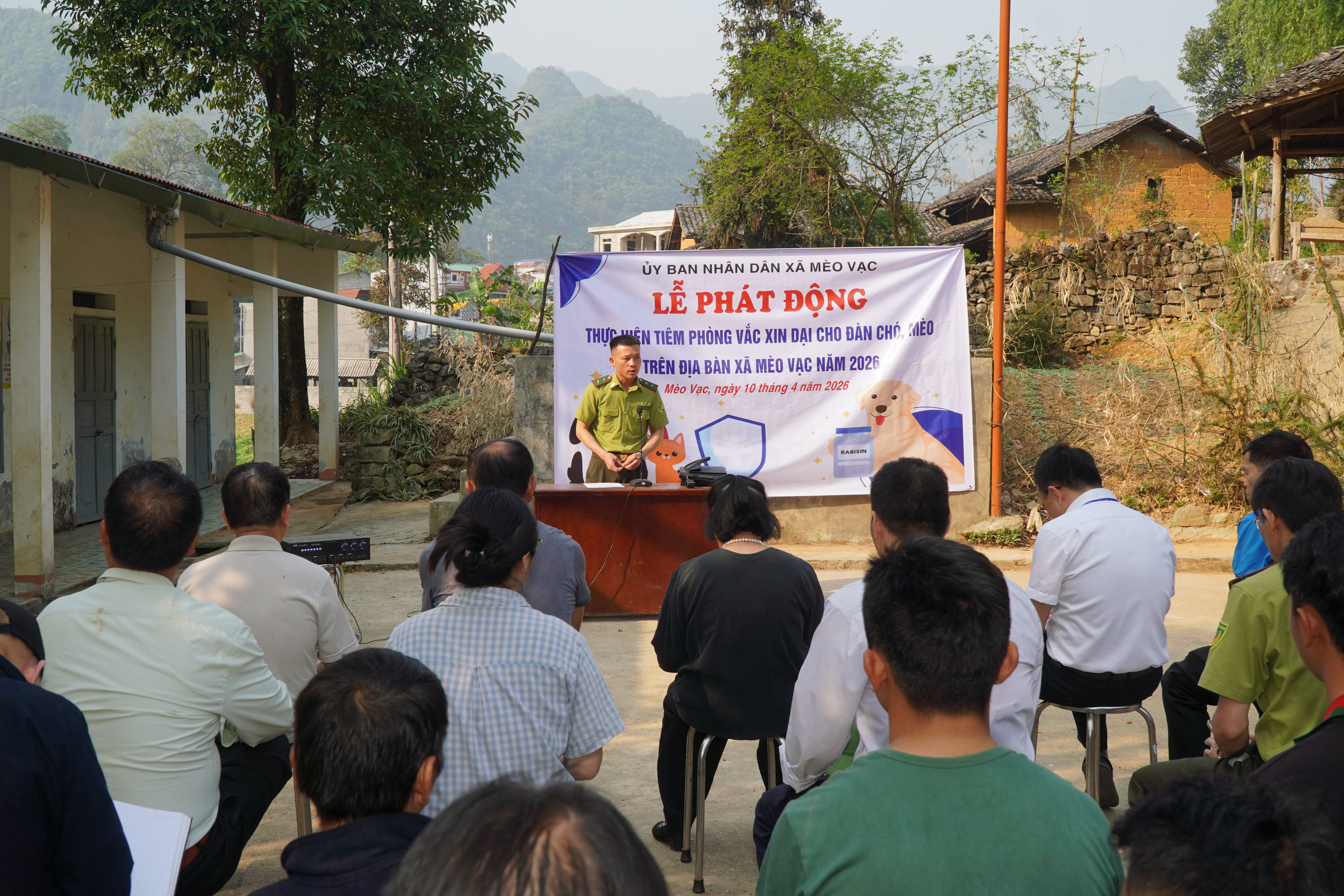 Phát biểu tại lễ phát động, đồng chí Chủ tịch UBND xã nhấn mạnh: bệnh dại là bệnh truyền nhiễm đặc biệt nguy hiểm, có khả năng lây từ động vật sang người và gần như 100% trường hợp tử vong khi đã phát bệnh. Mặc dù thời gian qua công tác phòng, chống bệnh dại đã được quan tâm triển khai, song nguy cơ vẫn còn tiềm ẩn do một số hộ dân chưa thực hiện tiêm phòng đầy đủ cho vật nuôi, việc quản lý chó, mèo còn hạn chế. Đồng chí khẳng định, việc tổ chức chiến dịch tiêm phòng vắc xin dại cho đàn chó, mèo là nhiệm vụ quan trọng, cấp thiết nhằm chủ động phòng, chống dịch bệnh, bảo vệ sức khỏe Nhân dân, góp phần ổn định đời sống và phát triển kinh tế - xã hội của địa phương.